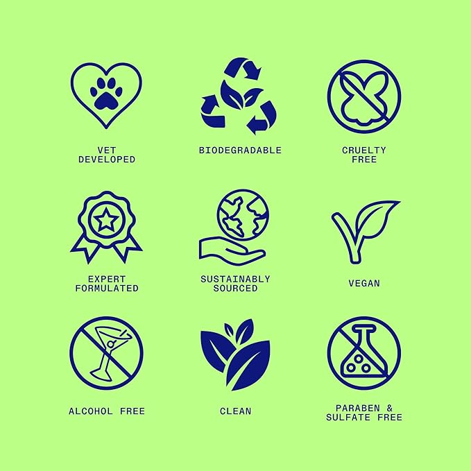 - Clean & sustainably sourced: Made with the safest ingredients. Non-toxic, vegan, cruelty-free, pH balanced for dogs, no harsh chemicals, alcohol-free, paraben & sulfate-free, sustainably-sourced, and made with love in the USA.