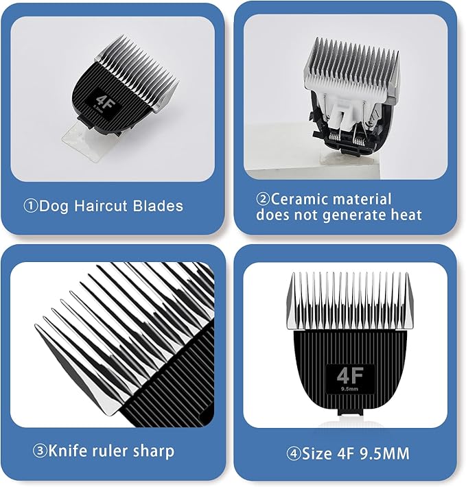 Replacement Blade for nebot P1 Pro Pet Grooming Kit & Vacuum,Size-4F Cut Length 3/8"(9.5mm),Made of Ceramic Blade & Stainless Steel Blade