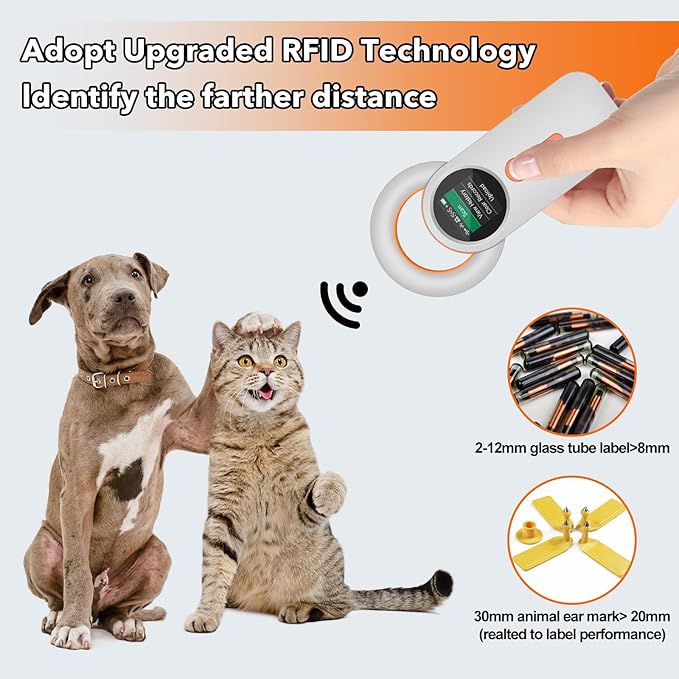 - 🐻[Supports multiple animal chip protocols]:The handheld reader supports for ISO 11784/11785, FDX-B and ID64 RFID, easy to operate, one button to read. NOTE: 1.Please confirm the frequency efficiency and agreement of your electronic tag before purchasing,Does not support FDX-A protocol. 2.The reader CAN NOT read AVID microchip.it can be widely used for animal management, resource management and railway inspection.