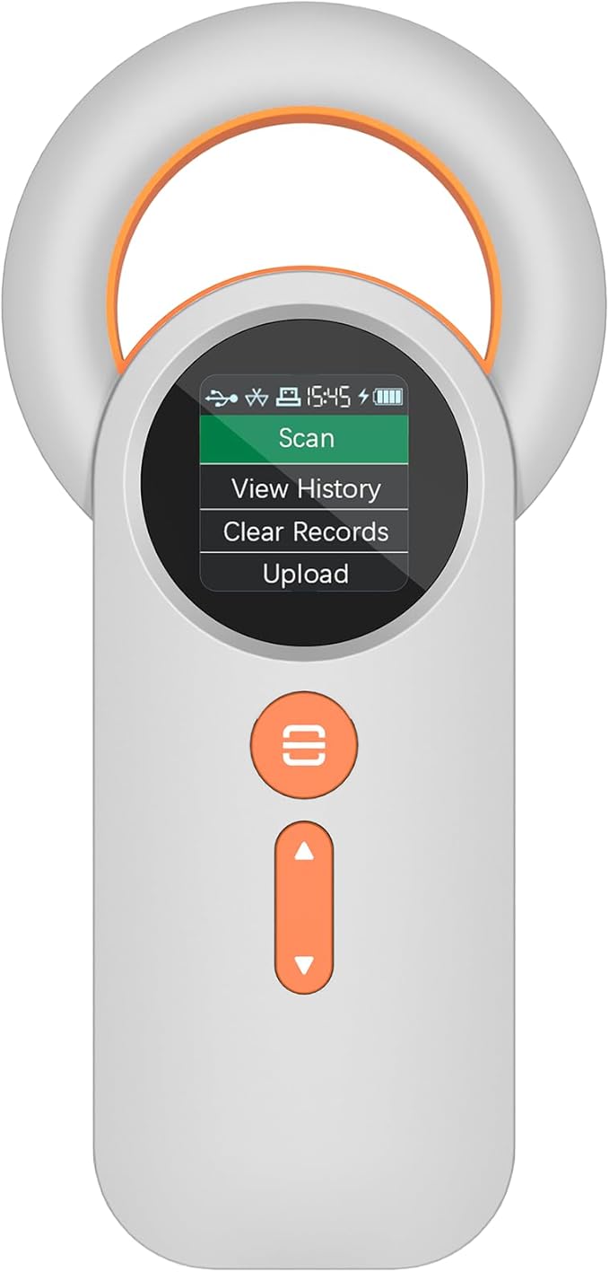 Pet Microchip Scanner Rechargeable RFID EMID Micro Chip Reader Scanner (2.4GHz Wireless+Bluetooth+USB) All in one 1.44” TFT Screen Display ISO11784 / ISO11785 / FDX-B and EMID for Animal/Pet/Dog/Cat