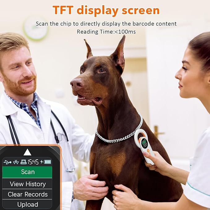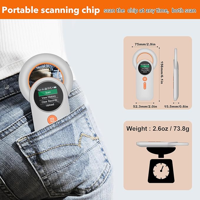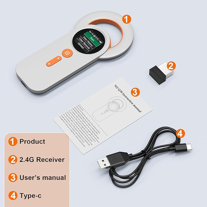 - 🐻[Built-in rechargeable 800 mAh lithium polymer battery]:It can work continuously for 10 hrs and can be charged via USB port, very convenient. Packing List: 1*Pet Chip Scanner; 1*User Manual; 1*USB Cable; 1*2.4GHz Dongle