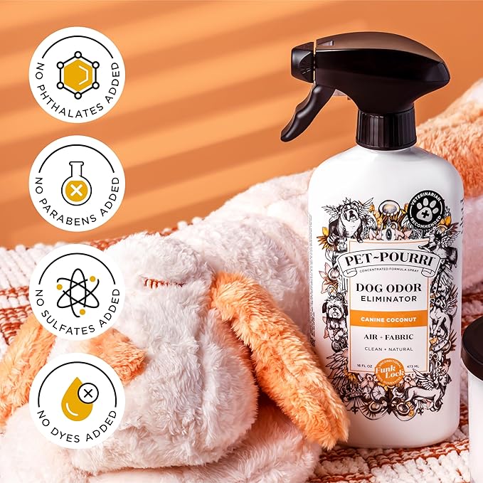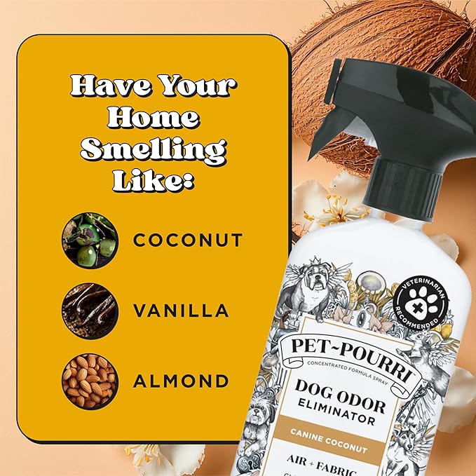 Pet-Pourri Pet Odor Air + Fabric Odor Eliminator Spray, Canine Coconut, 16 Fl Oz