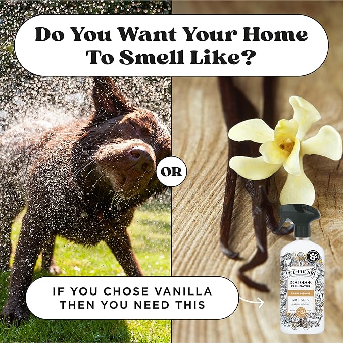 - Instant Freshness, No Lingering Odors: A few sprays of Pourri Canine Coconut instantly removes strong dog & pet odors, working in the air, pet beds, furniture, carpets, and more for a fresher home.
