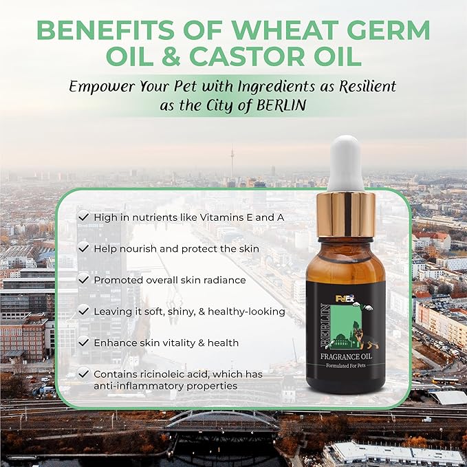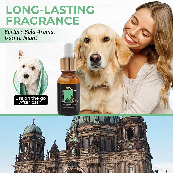 Petex Premium Pet Fragrance Oil | Ultra Premium Natural Pet Care with Dead Sea Minerals | Dog Perfume Fragrance Oil Long Lasting Scent | Natural Pet Cologne - Suitable for Dogs and Cats (Berlin)