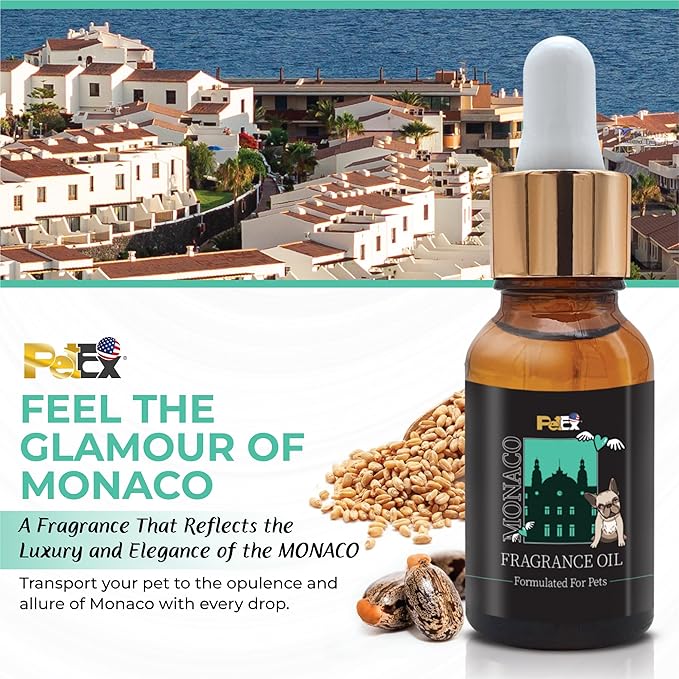 Petex Premium Pet Fragrance Oil | Ultra Premium Natural Pet Care with Dead Sea Minerals | Dog Perfume Fragrance Oil Long Lasting Scent | Natural Pet Cologne - Suitable for Dogs and Cats (Monaco)