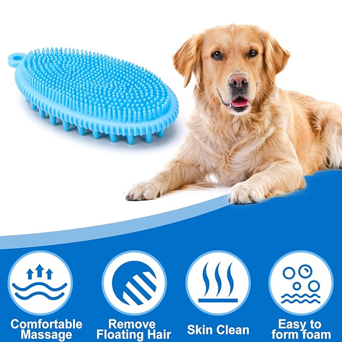 ROPO Dog Shampoo Brush, Dog Bath Brush & Dogs Shower, Dog Hand Brush for Grooming, Dog Scrubber for Bath, Dog Wash Brush (Blue)