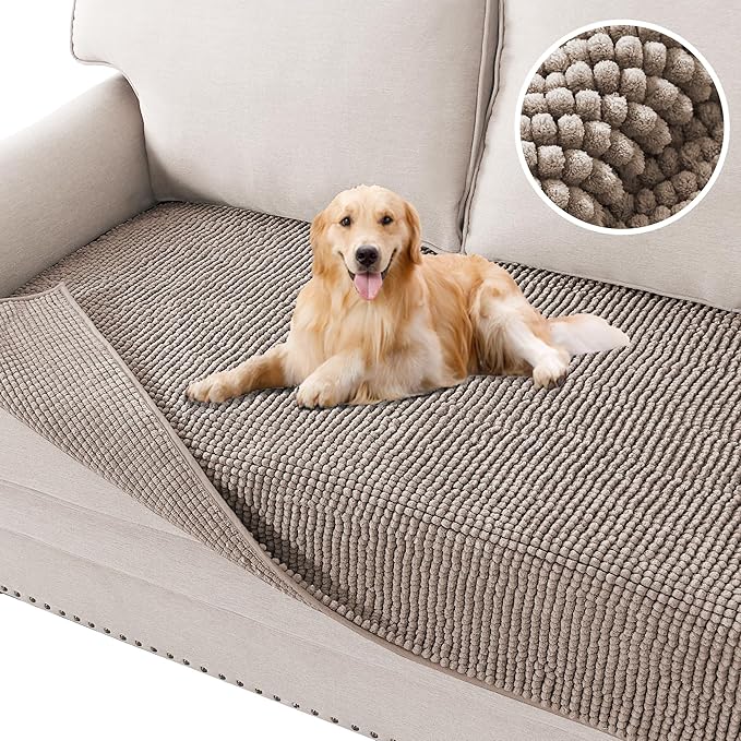 H.VERSAILTEX Plush Chenille Dog Bed Cover Thick Soft Sofa Cover for 3 Cushion Couch Anti Slip Couch Cover Furniture Protector for Dog, Pet, Cat (35" x 82", Sand)