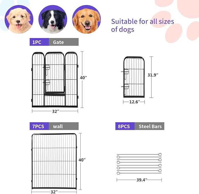 - 🐕【High Quality & Durable Material】Our dog playpen constructed from sturdy heavy duty rust resistant metal for increased longevity and durability. Durable puppy playpen great for indoor or outdoor use. Our pet playpen is your best choice! dog playpen puppy playpen pet playpen