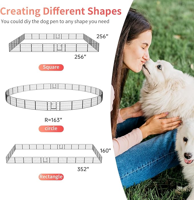 - 🐕【Change to Multiple Shape Easily】Our puppy playpen design allows for multiple shape configurations to meet your needs, such as the shape of rectangle, square or octagon. This dog playpen will be ideal for any pet lover. If you have any questions about our pet playpen, please feel free to contact us. Dog Playpen Dog Pen Dog Fence Puppy Playpen