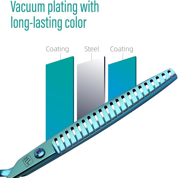 Dog Grooming Scissors: Blueish Green 7.5 inch Professional Pet Chunker Shears Made Of Japanese 440C Advanced Stainless Steel for Dogs Cats and Other Pets