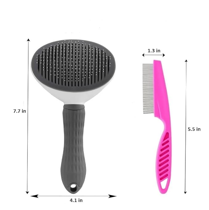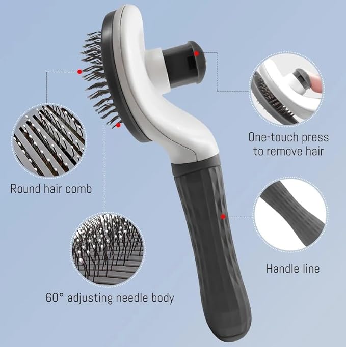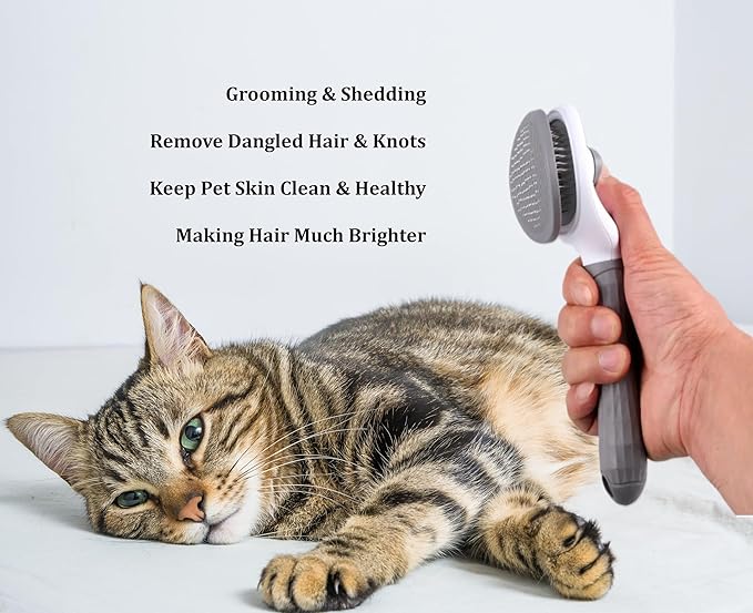 - 【ONE-CLICK CLEANING BUTTON】 After brushing your pet, simply click the button. The shutter will pop up, separating the brushed hair from the metal needle, then wipe the hair off. The button of pet brush for shedding short hair in front saves time and energy when grooming and cleaning.