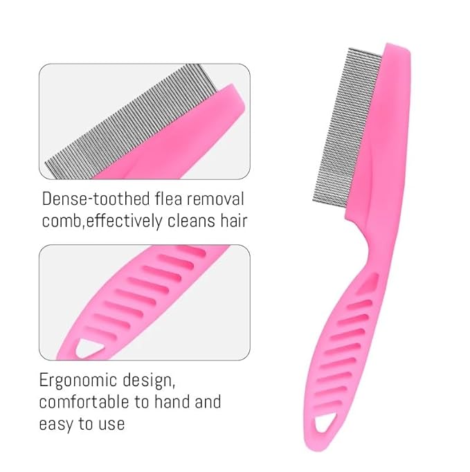 - 【CLOSED-TEETH COMBS】 Stainless steel needle fine tooth comb with long grip suitable for pet hair cleaning with short and long hair, one set of our comb is enough for your pet grooming.