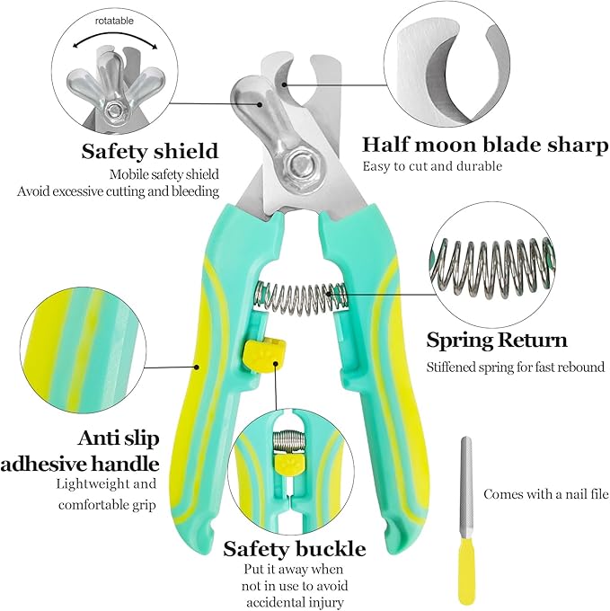 - Efficiency: Pet nail clippers are very safe and have a safety lock device to prevent nails from being cut too deep. The power-assisted spring can cut nails very effortlessly. Ergonomic design makes your hands less likely to feel tired. Nail file + Diamond Dremel Dog Nail Grinder is very efficient for polishing.