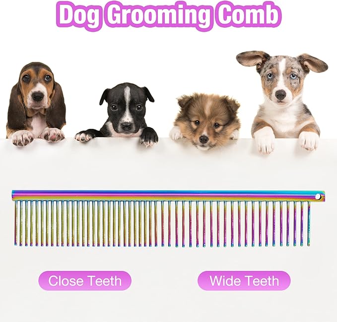 Professional Dog Grooming Scissors with Safety Round Tips, 5 in 1 Dog Grooming Scissors Set, 4CR Stainless Steel Pet Grooming Shears for Dog, Cat,Sharp and Sturdy, Rainbow