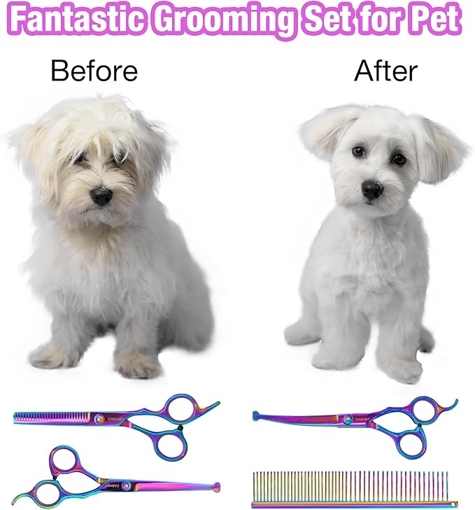 - Excellent Service: We have confident in our dog grooming scissors kit.It is also a perfect gift for your friends. If you have any questions or suggestions, please contact us and we will help you until you are satisfied.