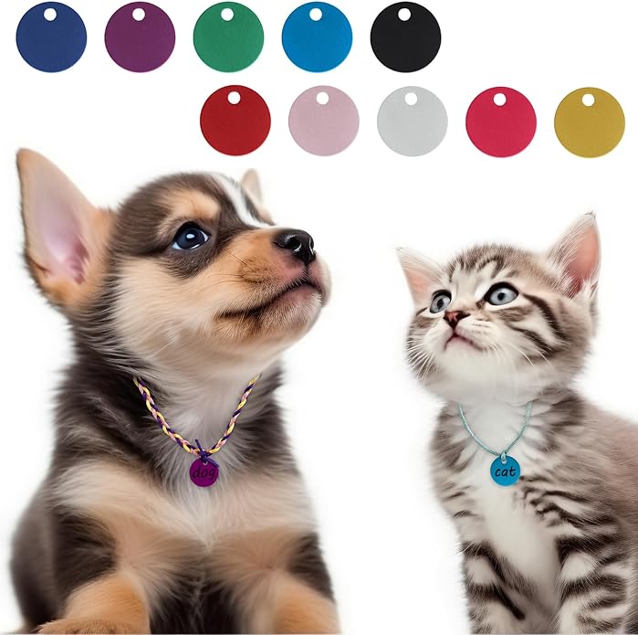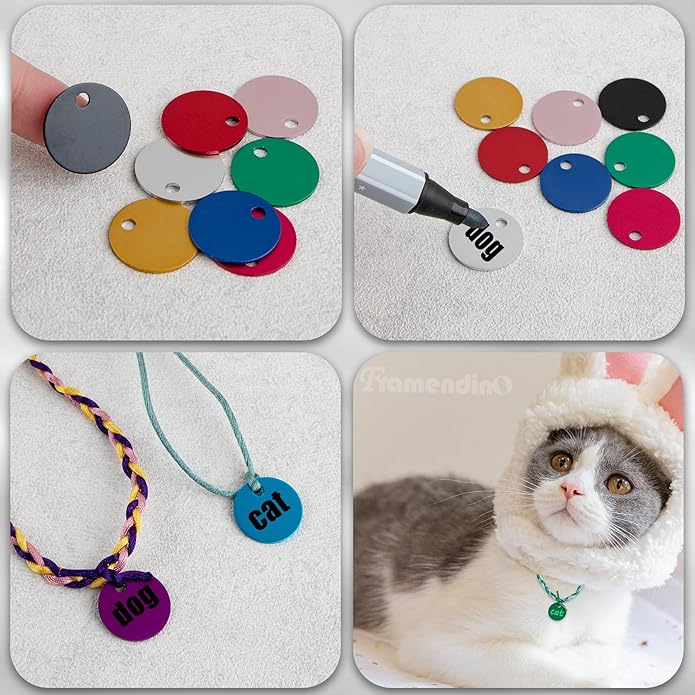 Framendino, Pet ID Tag Colorful Blank Round Double Sided Pets ID Tag Name Phone Number ID Tags Aluminum Charms