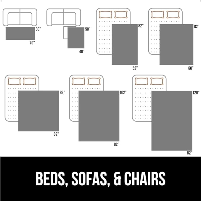 - BEDS, SOFAS, AND CHAIRS: blanket measures 30” x 70”; available in many sizes for all spaces; sizing aligns with bed and sofa sizing for a perfect fit; machine wash and dry