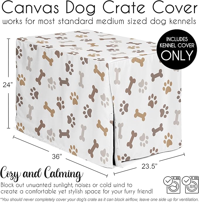 Sweet Jojo Designs Bone Paw Print Dog Crate Cover – Kennel Covers for 36 Inch Pet Cage Medium - Neutral Grey Taupe Brown Modern Off White Gray Tan Puppy