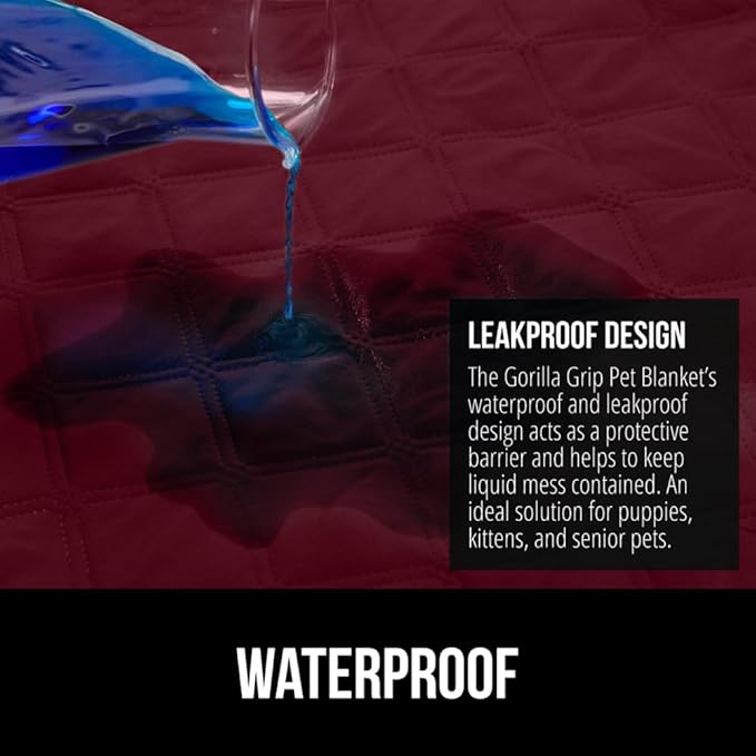 Gorilla Grip 100% Waterproof Dog Blanket 68x82, Pet Friendly Throw Essential for Large Pets, Dogs, Cats, Tear and Slip Resistant Leakproof Couch Cushion Protector Cover for Indoor Furniture, Burgundy