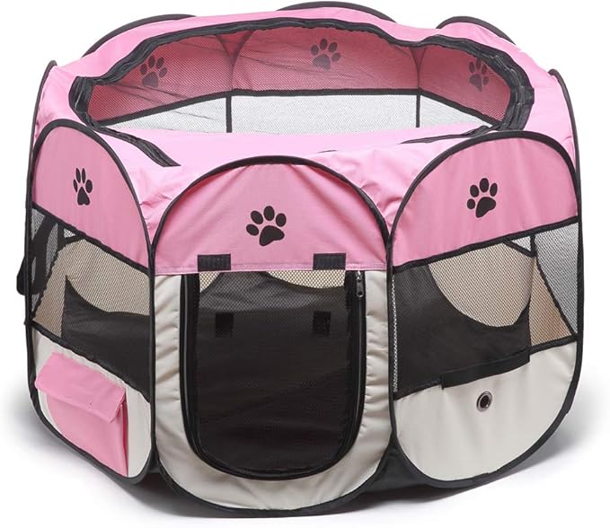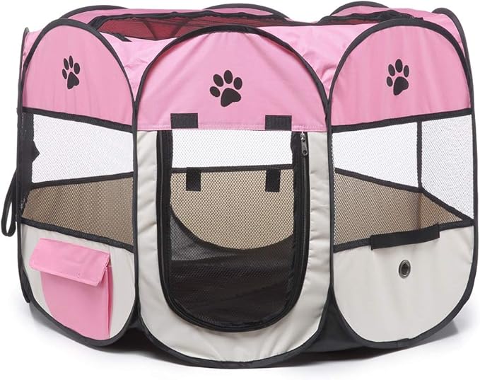 Portable Pet Playpen, 28.3" Foldable Dog Playpen for Dogie Kitten Rabbit, Exercise Playpen Tent Indoor/Outdoor Use (pink)