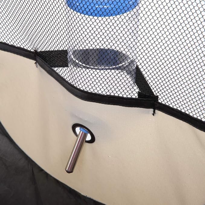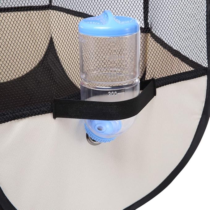 - Design Features: Roomy 8 Panel collapsible Design puppy playpen with protected seams and reinforced corners allows for extremely easy set up and take down. Removable zipper top half mesh half shaded design and zipper door with velcro provides easy in/ out access for your pet. Side pockets also make convenience for personal little items etc.