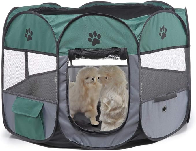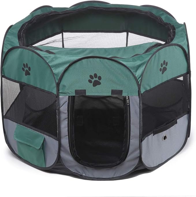 Portable Pet Playpen, 28.3" Foldable Dog Playpen for Dogie Kitten Rabbit, Exercise Playpen Tent Indoor/Outdoor Use (green)