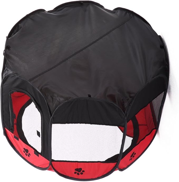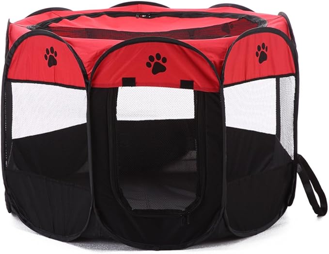 Portable Pet Playpen, 28.3" Foldable Dog Playpen for Dogie Kitten Rabbit, Exercise Playpen Tent Indoor/Outdoor Use (red)