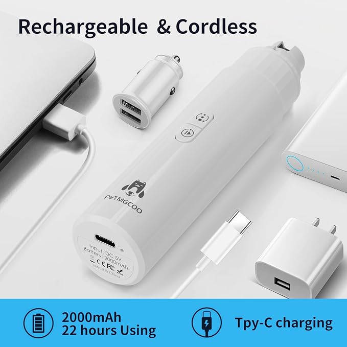 - Bi-directional Rotation:The nail grinder for dogs adopts a bidirectional rotation design, which is simple and convenient to operate, and can be easily used with either hand. Its unique design makes it more convenient and efficient for you to trim your pet's nails without having to frequently change hands