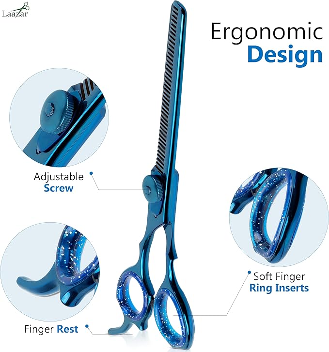 Laazar Dog Grooming Scissors - 6.5 Inch 42 Teeth Thinning Shears for Dogs, 440C Stainless Steel Pet Grooming Scissors, Dog Grooming Shears with Finger Rest & Case, Cat Grooming Supplies