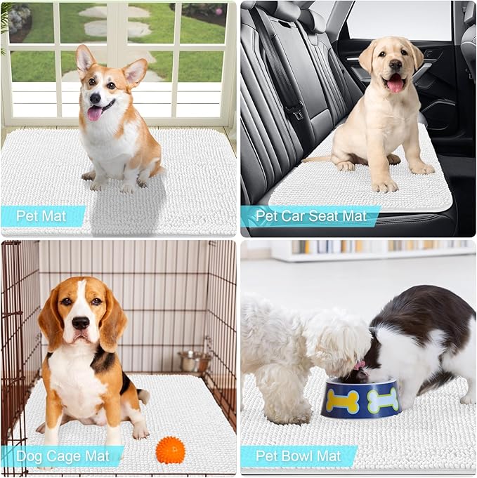 OLANLY Dog Door Mat for Muddy Paws 30x20, Absorbs Moisture and Dirt, Absorbent Non-Slip Washable Mat, Quick Dry Chenille, Mud Mat for Dogs, Entry Indoor Door Mat for Inside Floor, White