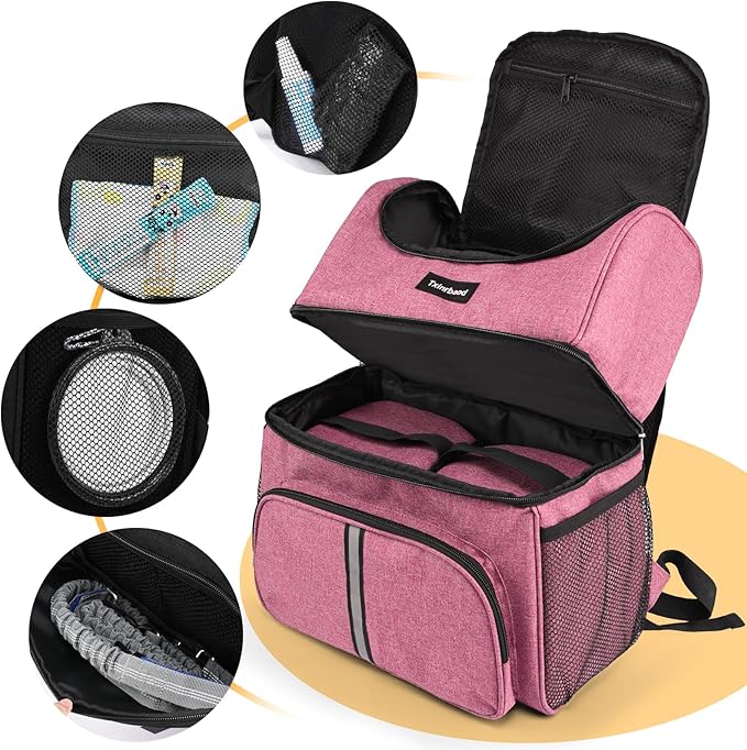 Dog Travel Bag Dog Backpack For Supplies With Food Container Bag for Hiking Overnight Camping Trip Pink