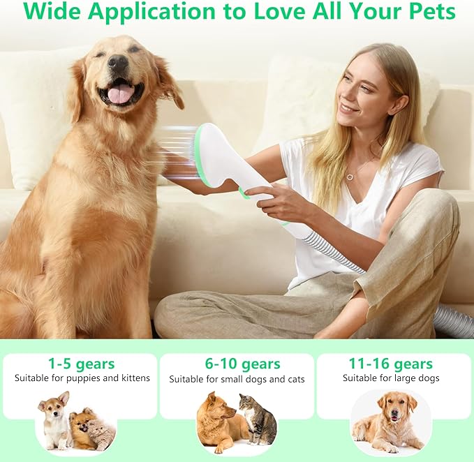 - 【16 levels of suction adjustment】 Our pet groomer has a super suction of 13.4Kpa, which is divided into 16 gears for adjustment, and can collect 99% of pet hair into the vacuum container.