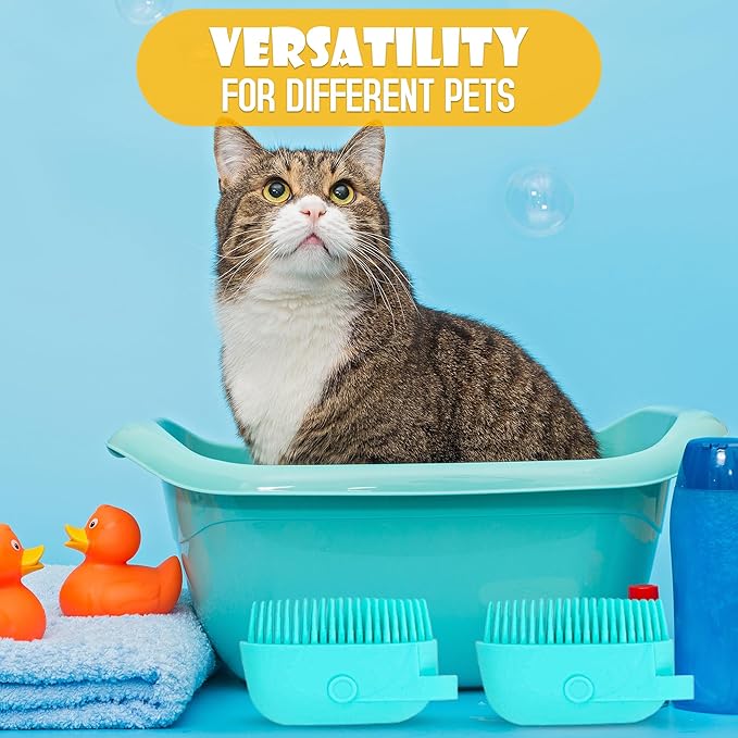 - Easy to Use: This pet scrubber bath brush has non-slip hand grip design that providing a comfortable hold even when wet. Plus, its clever design also allows for easy shampoo dispensing. Simply squeeze it and shampoo will flows out.