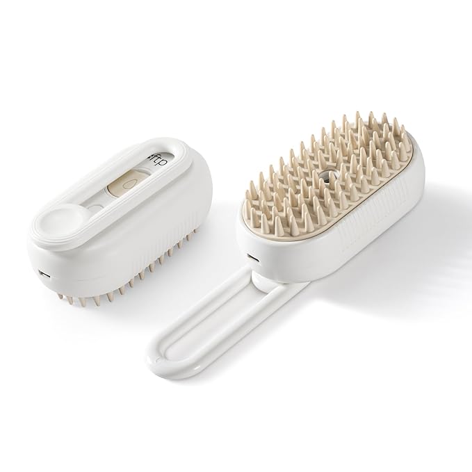| Pet Steam Mist Brush | Grooming Spray Brush for Dogs, Cats, and More! | Brush for Massage | Hair Brush for Removing Tangled and Loose Hair (White)