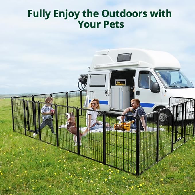 - Prevention of Escape: The dog pen features a 40"H height to prevent escapes and a gravity automatic invisible door lock that prevents pets from opening the door on their own. Your furry friends stay in a safe area and enjoy their own time