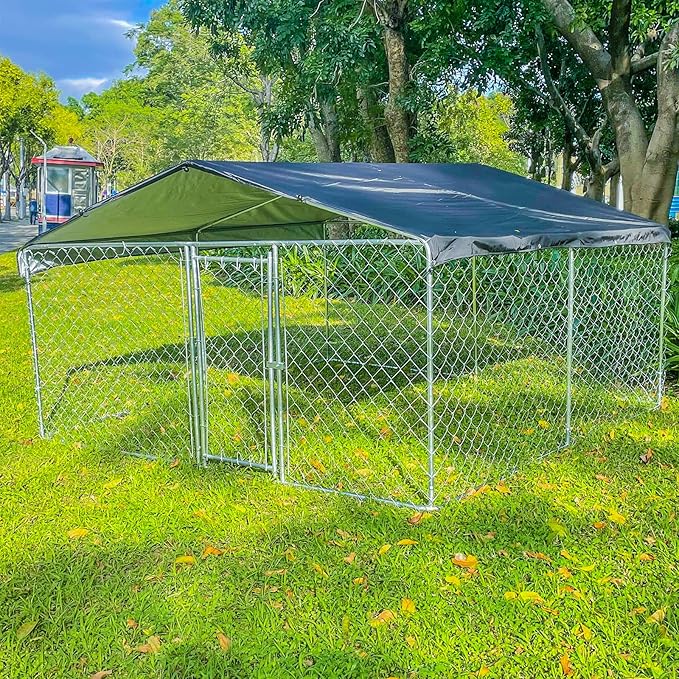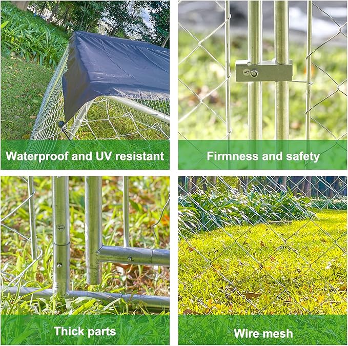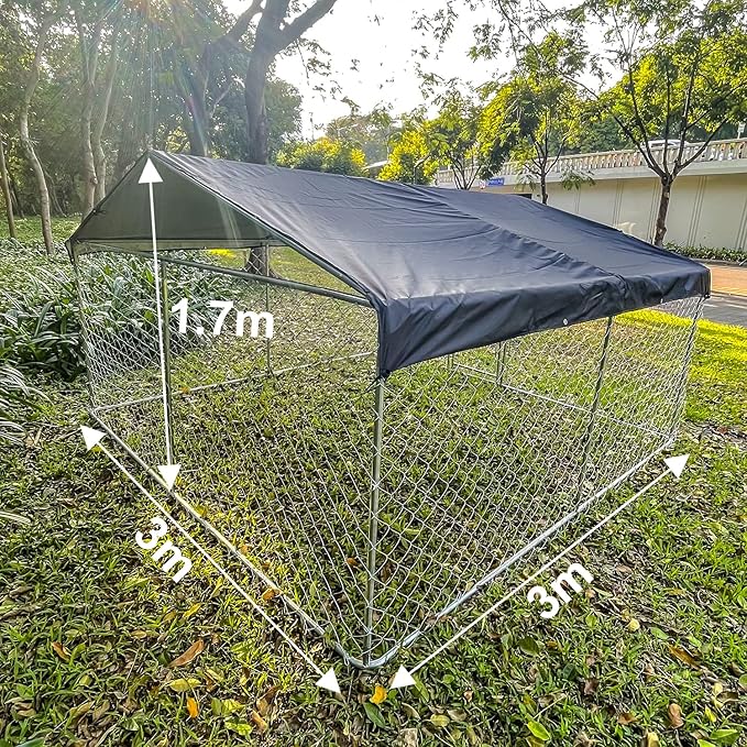 - LUXURIOUS ROOMINESS-Our dog kennel is a perfect choice for your pets. The size of dog enclosures is 118x118x67 inches, Large enough for your pets to relax in a pet-friendly & secure outdoor space. The dog cage is sturdy and durable, breathable and easy to clean, making your pet feel happy and comfortable