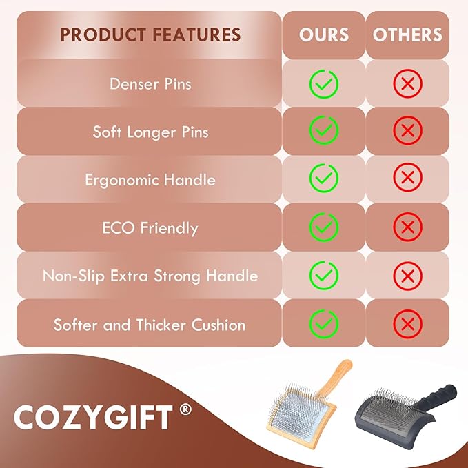 • [100% Guarantee] This slicker brush is well-priced and designed for your convenience. Keep one at home and another in the car for easy grooming on the go. It’s also a thoughtful gift for family, friends, and colleagues—COZYGIFT dog grooming brush is a sweet choice for pet lovers.