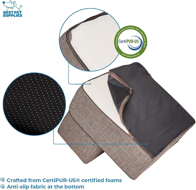 Best Pet Supplies Portable Foldable Foam Pet Stairs/Steps for Couch, Sofa, and High Bed, Non-Slip Bottom Balanced Paw Safe - Brown Linen, Foldable 2-Step (H: 12")