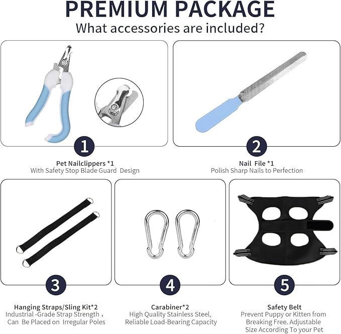 Cat/Dog Grooming Hammock Hanging Harness,Pet Grooming Restraint Sling with Wide Strap Anti Scratch&Bite,for Nail Trim/Take Eye/Ear Care with Nail Clipper/Nail File Pet Grooming Supplies Kit-L