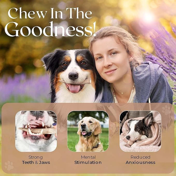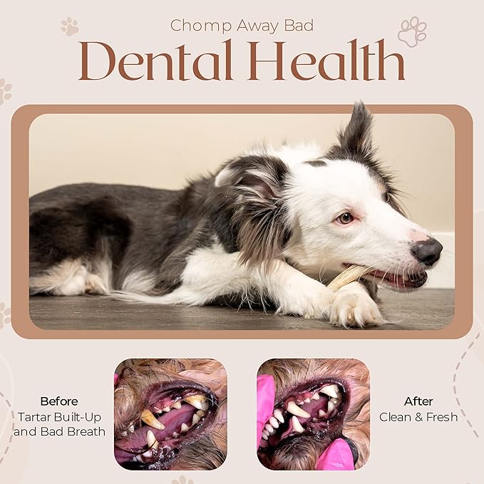 - Dental Health: Chewing on deer antlers can help promote dental health by reducing plaque and tartar buildup on your dog's teeth. The chewing action also helps massage the gums, which can contribute to overall oral hygiene.