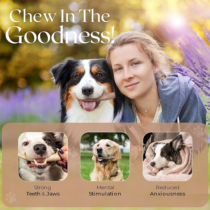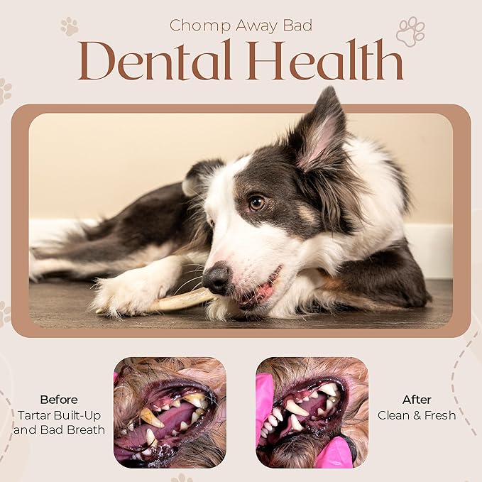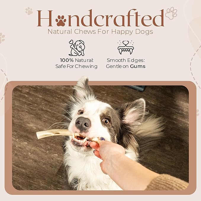 - Dental Health: Chewing on deer antlers can help promote dental health by reducing plaque and tartar buildup on your dog's teeth. The chewing action also helps massage the gums, which can contribute to overall oral hygiene.