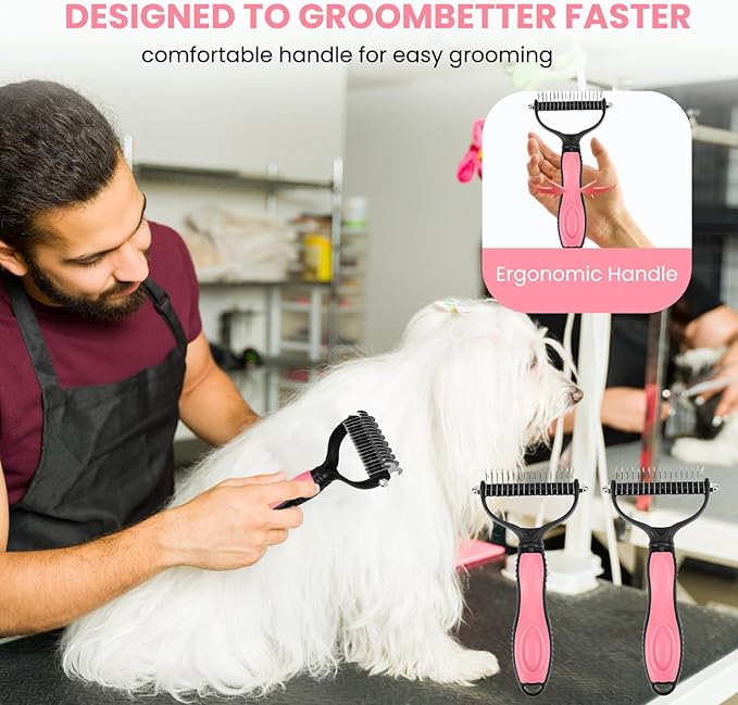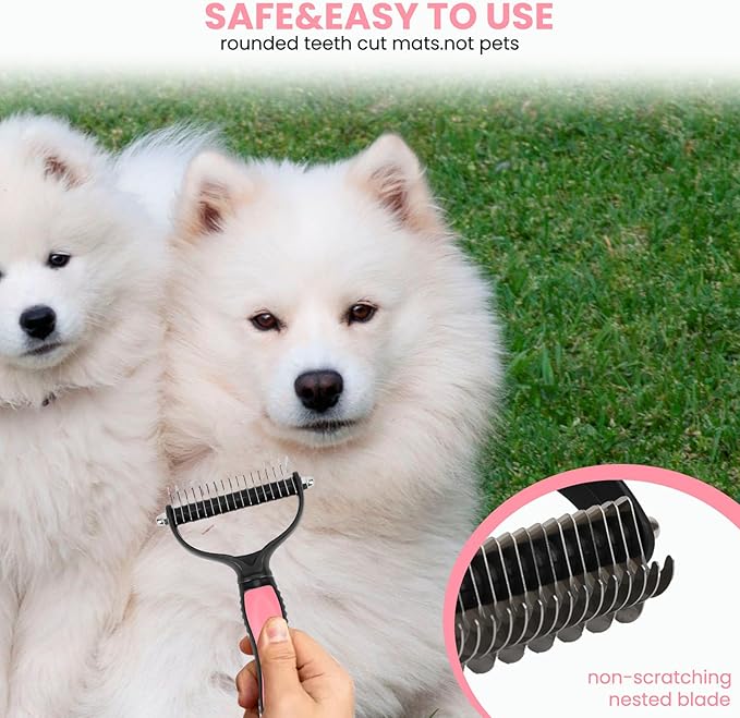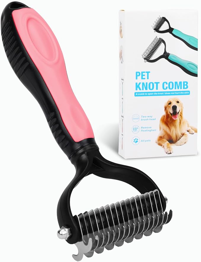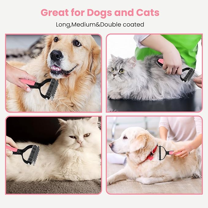 Pet Grooming Tool- 2 Sided Undercoat Rake for Dogs &Cats-Safe and Effective Dematting Comb for Mats&Tangles Removing (Pink)