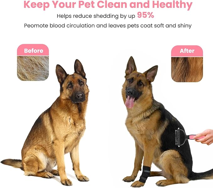 - Dual-Sided Design: Start with the 9-teeth side for effortless removal of stubborn mats, tangles, and knots, then switch to the 17-teeth side for effective deshedding and thinning.