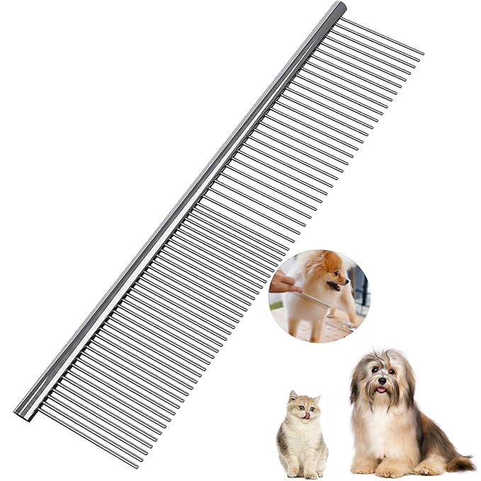Dog Comb, Metal Dog Grooming Combs with Rounded Ends Stainless Steel Teeth for Grooming Matting Cats Dogs Comb Brush Tool for Long Haired Pets Gently Remove Tangles and Knots
