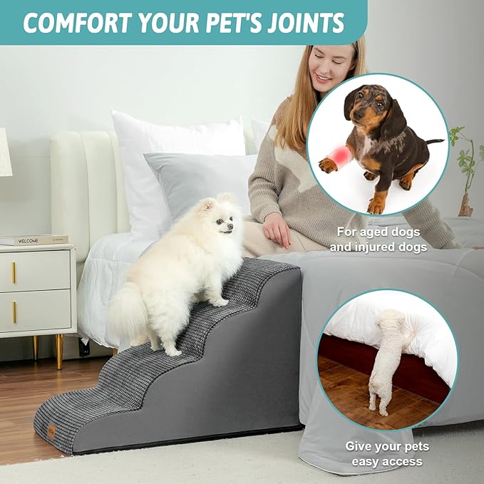 - 【NOTE & CHOOSE】NOTE: This STAIR IS NOT FOR LARGE DOG. NOTE: Please cover the cover before the sponge is completely fluffy to avoid being unable to cover. Please Note that the inner foam is not washable. 2 Tiers are suitable for Chair, 3 Tiers are suitable for Sofa or Couch, 4 Tiers are suitable for bed, 5 Tiers are suitable for High Bed or Car