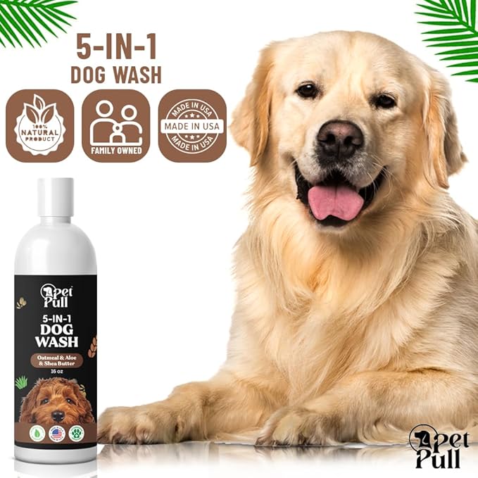 5-in-1 Dog Wash - Plant Based Dog Grooming Supplies for Dogs Cleanses - Skin Care Dog Wash Shampoo - Sulfate Free, All Natural Puppy Wash Made in USA (16 Fl Oz) (Oatmeal, Aloe, Shea-Butter)