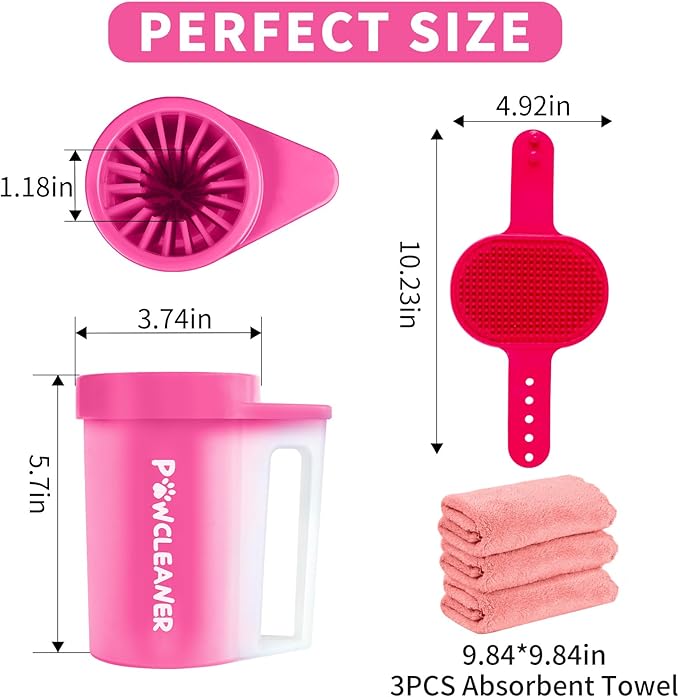 - 【Easy to Use】To clean your dog's paws with the dog foot cleaner, just put the muddy paws into the cup and twist it a few times. Wipe with the matching towel after cleaning to prevent wet dog paws from dirtying the floor.