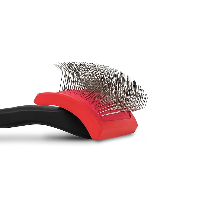 - COMFORT & SAFETY - Angled, extra-long sturdy stainless steel pins penetrate coats with ease. Cushioned rubber pad provides comfortable experience for pets.