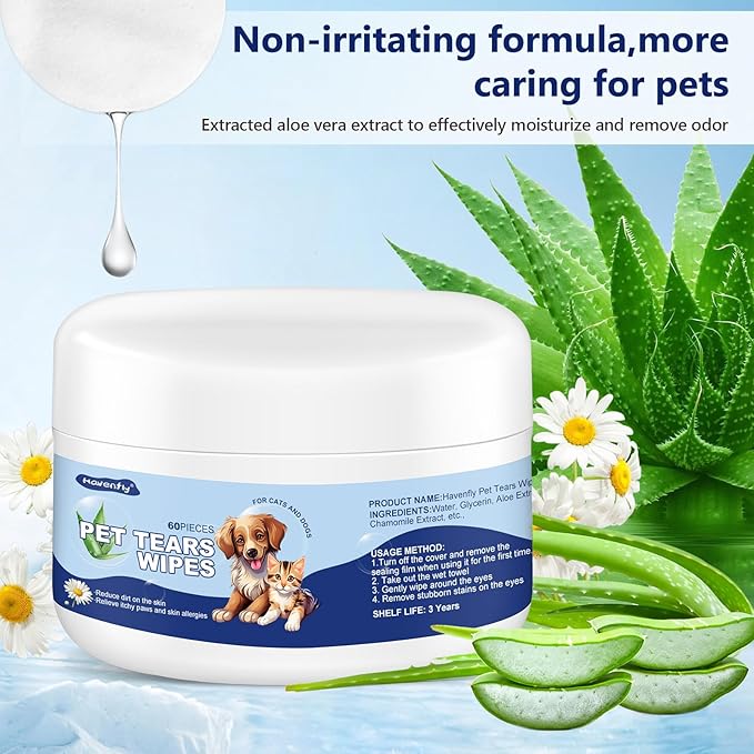 Dog Ear Wipes, Eye Wipes for Cats, Dog Tear Stain Remover Wipes, Pet Eye Wipes for Discharge and Crust (60 Packs)