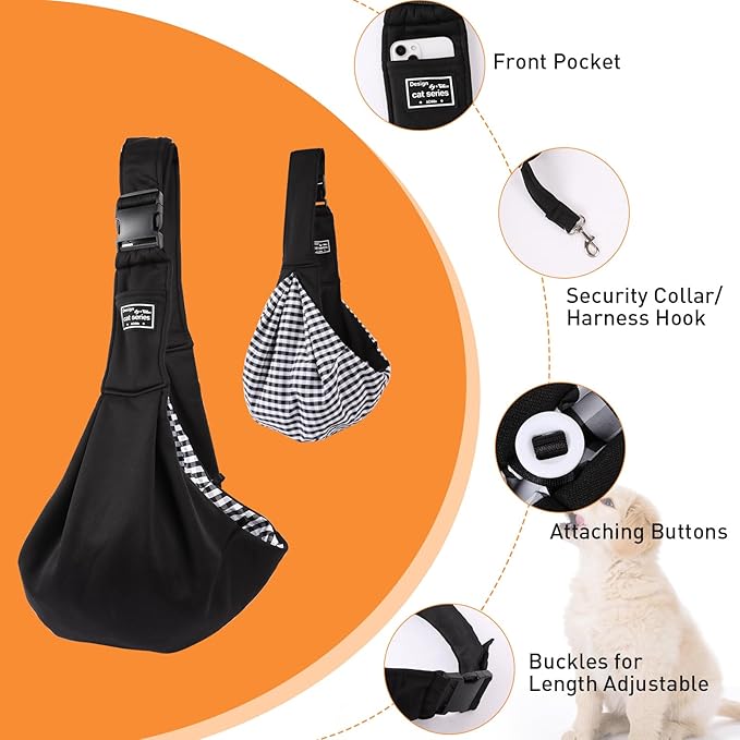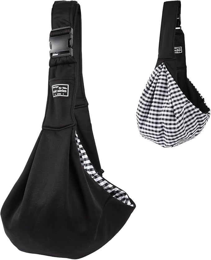 Small Dog Sling Carrier Black, Hand Free Pet Carrier, Adjustable Dog Sling for Outdoor Travel